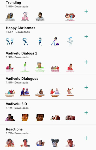 We are not only have trending and latest packs we have all classic comedians sticker packs like Vadivelu reaction pack Vadivelu. Comedy Word Dialogues from Vadivelu Santhanam Goundamani Senthil and other popular comedians. - Tap on ADD TO WHATSAPP.