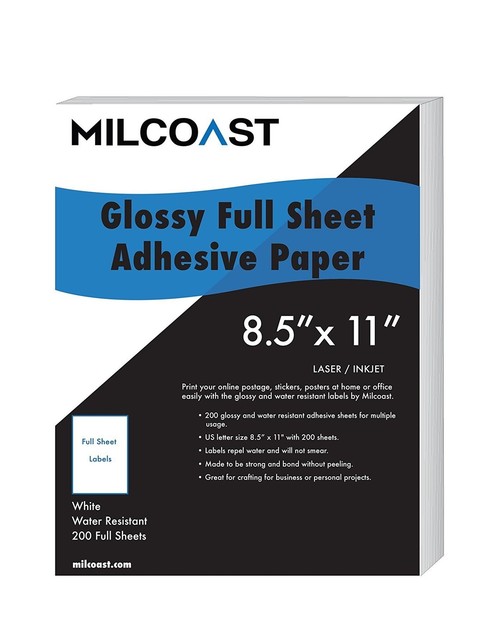 Since 1928 Strickland Companies has reliably provided our customers with business digital and printing papers. Laptop or mobile phones cover skin The glossy sticker paper could be cut to size to fit a laptopmobile phone external cover giving you the ability to put some life and personalize what is otherwise a boring laptop or mobile phone exterior. Milcoast Full Sheet 85 x 11 Shipping Sticker Paper Adhesive Labels Glossy for Laser or Inkjet Printer 200 Full Sheet 42 out of 5 stars 3437.