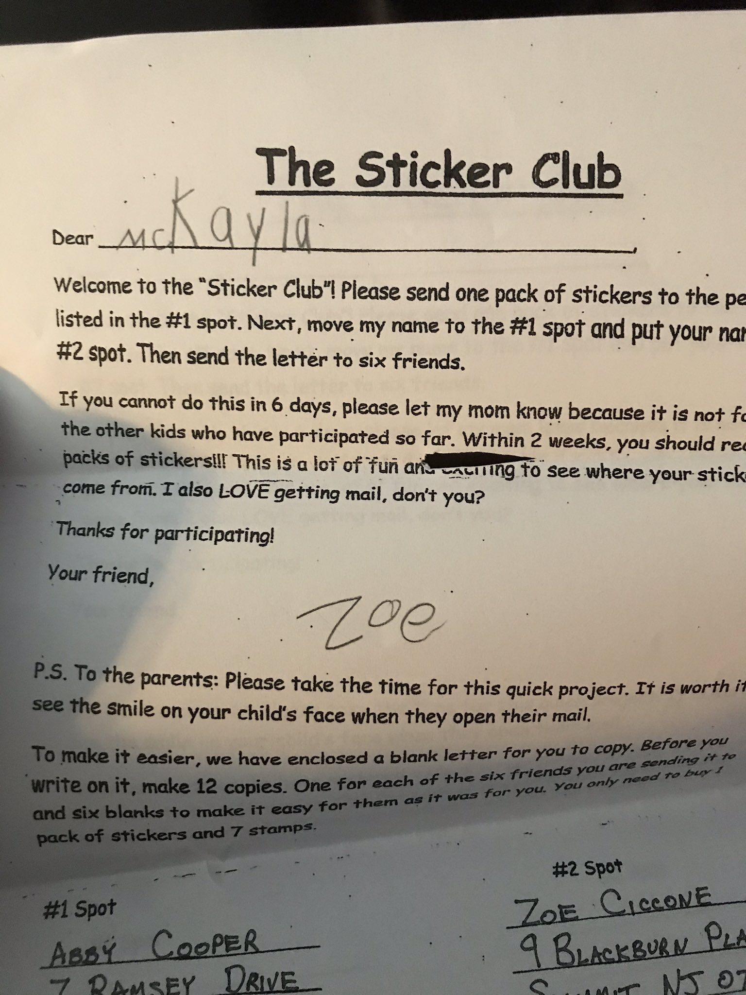 The Sticker Club Aka Elementary Pyramid Scheme Daughter Got This In The Mail From A Friend Mildlyinfuriating